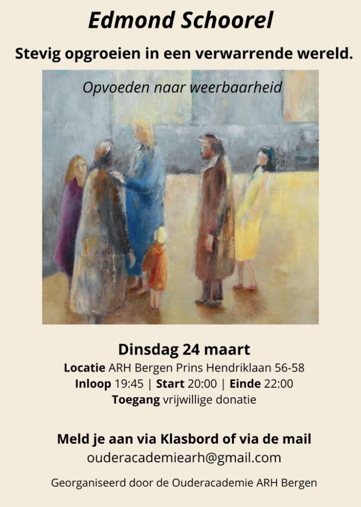 Wat kan je als ouder gelukkig zijn, als je bij je kind eigenschappen herkent. Dat heeft hij van mij! Wat kan je als kind ongelukkig zijn, als je ontdekt dat je zo op je vader of moeder lijkt! Waarom ben ik bij jou geboren? Kinderen van dezelfde ouders zijn zo ongelooflijk verschillend. Wat is de rol van de erfelijkheid dan nog? Wie of wat maakt dat kinderen uit één gezin zo verschillend zijn? Kijk eens naar lotgevallen in het leven van een kind, een opgroeiend mens. Hoe was de geboorte, welke ontmoetingen zijn bepalend geweest in zijn of haar leven? We gaan ons deze avond bezighouden met de vragen: Wie of wat is het lot? Wie of wat is de erfelijkheid? Zijn het de genen die uitmaken wat er van ons kan worden? Zijn het de omstandigheden, die bepalen wie we zijn? Uiteindelijk komen we ook uit bij de vraag of we voorbestemd of vrij zijn. Beter gezegd: in hoeverre we voorbestemd en vrij zijn. Zijn het de schikgodinnen, die ons fatum, ons lot bepalen? Zijn we fatalistisch? Zijn we het zelf? Of is dat in feite geen tegenstelling? Wat is karma? Op deze vragen zal Edmond Schoorel op 14 april 2026 ingaan. Er zal zeker ruimte zijn om met elkaar in gesprek te gaan.